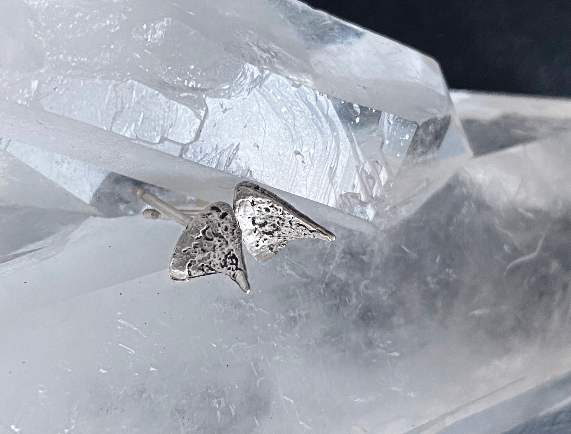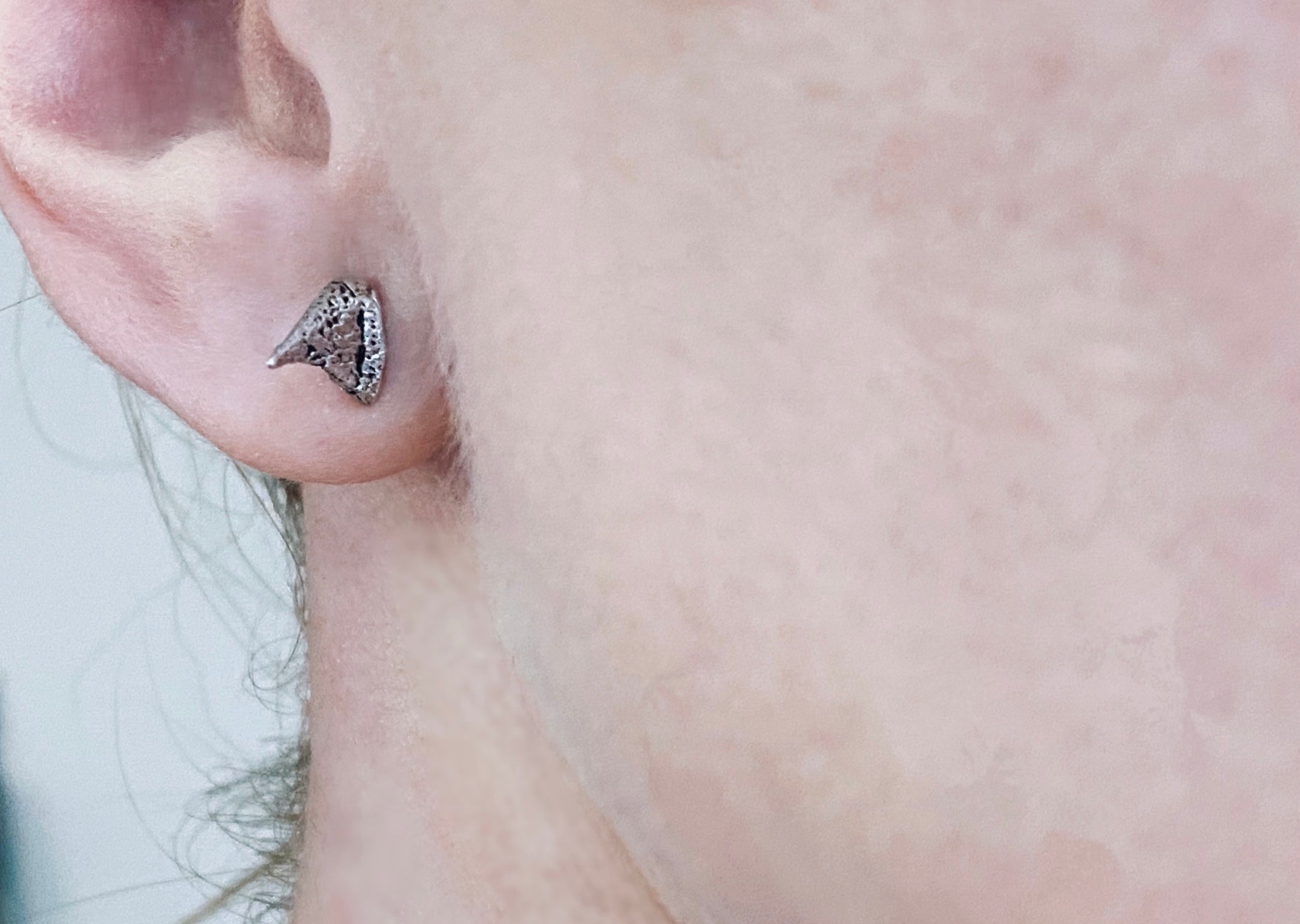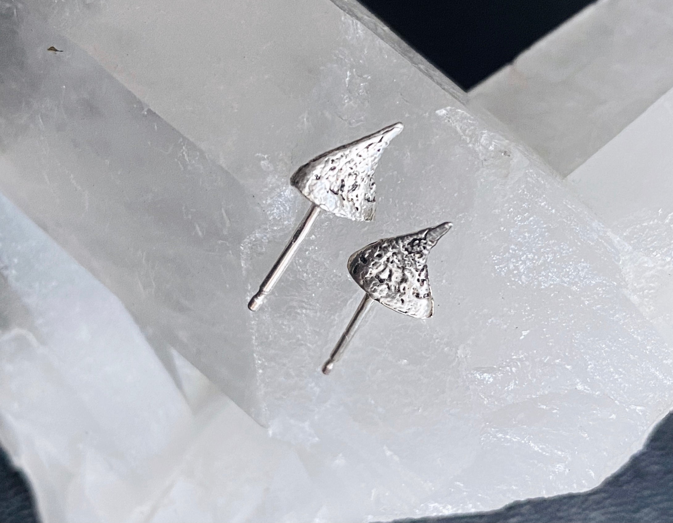 The simple beauty of a thorn; a source of both pain and protection, as only the bravest will dare to challenge it to behold the rose. Cast from real rose thorns, these solid sterling silver studs are blackened for texture and polished to a shine. 20 gauge sterling posts, sterling ear nuts included.